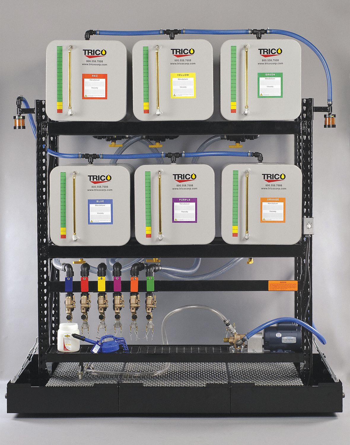Color Coded Industrial Oil Storage System With 65 Gallon Steel Tanks Fluidall