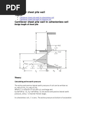 Cantilever sheet piles cantilever sheet pile walls are usually recommended to use for walls of moderate height 6m measured above the dredge line.